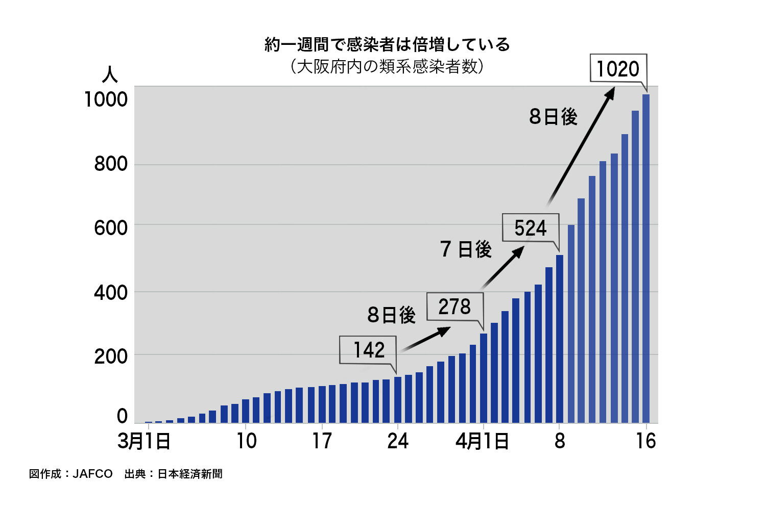 世界を大きく変えた新型コロナウイルスもまさにこの事象のひとつです。一週間前まで数人の感染者だったのが、数日で爆発的に増加し、桁が次々と変わっていきました。もちろん、対策を講じることでこのような指数関数的な変化をなるべく抑制しようとする動きもあり、実際に日本の感染者数の増加は線形的な増加になった時期もありました。