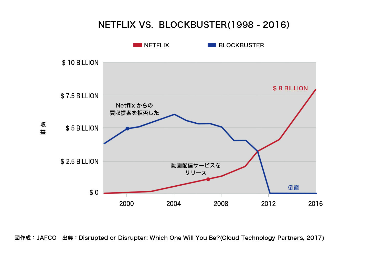 しかし、Netflixに対して、当時のCEOが" みなさんがNetflixを持ち上げることに、率直に言って困惑しています。...Netflixはうちにできないことをやってるわけではない、うちがすでにやったことをしているだけです。" と語るほど、定額制オンライン動画配信サービスを脅威に感じてはいませんでした。さらにBlockbusterがNetflixを5000万ドルで買える機会がありましたが、それすらも断固として拒否するほどだったのです。Netflixは急激に成長し、2012年にはBlockbusterを倒産にまで追い込みました。このように、我々が想像している以上に、ビジネスでも大きな変革は起き得るのです。