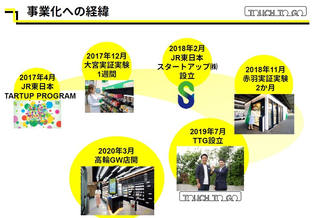 日本で唯一実用化されている省人化・無人決済店舗システムを開発する、JR東日本スタートアップ株式会社とサインポスト株式会社による合弁会社。JR東日本スタートアップが主催するスタートアッププログラムの中で、"お客さまへのサービス向上、従業員の働き方改革や人手不足の解消"を目的に無人AI決済店舗の開発・協業がスタートし、大宮駅と赤羽駅を活用した実証実験を経て、設立にいたる。今後は、最先端のIT技術、デバイス開発力、オペレーションノウハウを活かして、小売店舗の労働力不足、地域店舗の維持等の課題を解決する無人決済システムソリューションを展開していく。