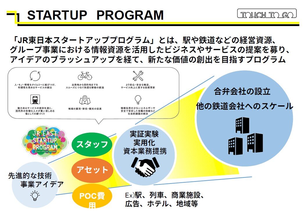 そして、2017年にベンチャー企業とのアクセラレーションプログラム(※)「JR東日本スタートアッププログラム」をスタート。翌年2月にはJR東日本100%出資のコーポレートベンチャーキャピタル「JR東日本スタートアップ株式会社」を設立しました。