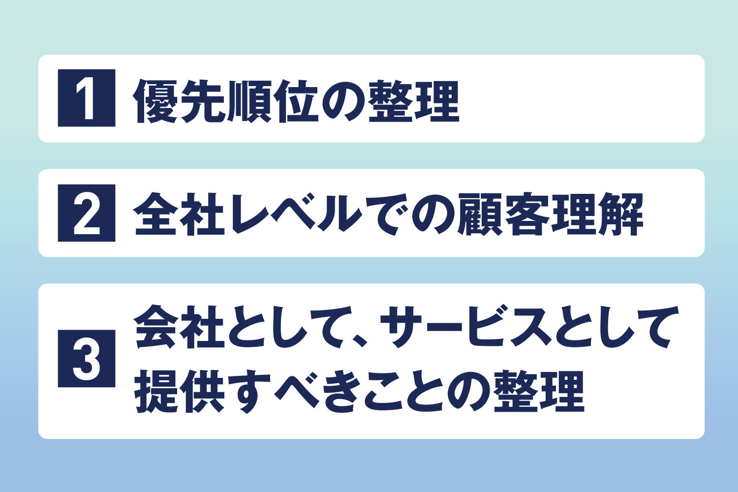 大きく3つあります。1つ目は、今申し上げた優先順位の整理にかなり時間をかけました。それによってサービス導入の意思決定者が誰で、ターゲットが誰で、セカンダリターゲットが誰なのかという部分を明確化できました。
