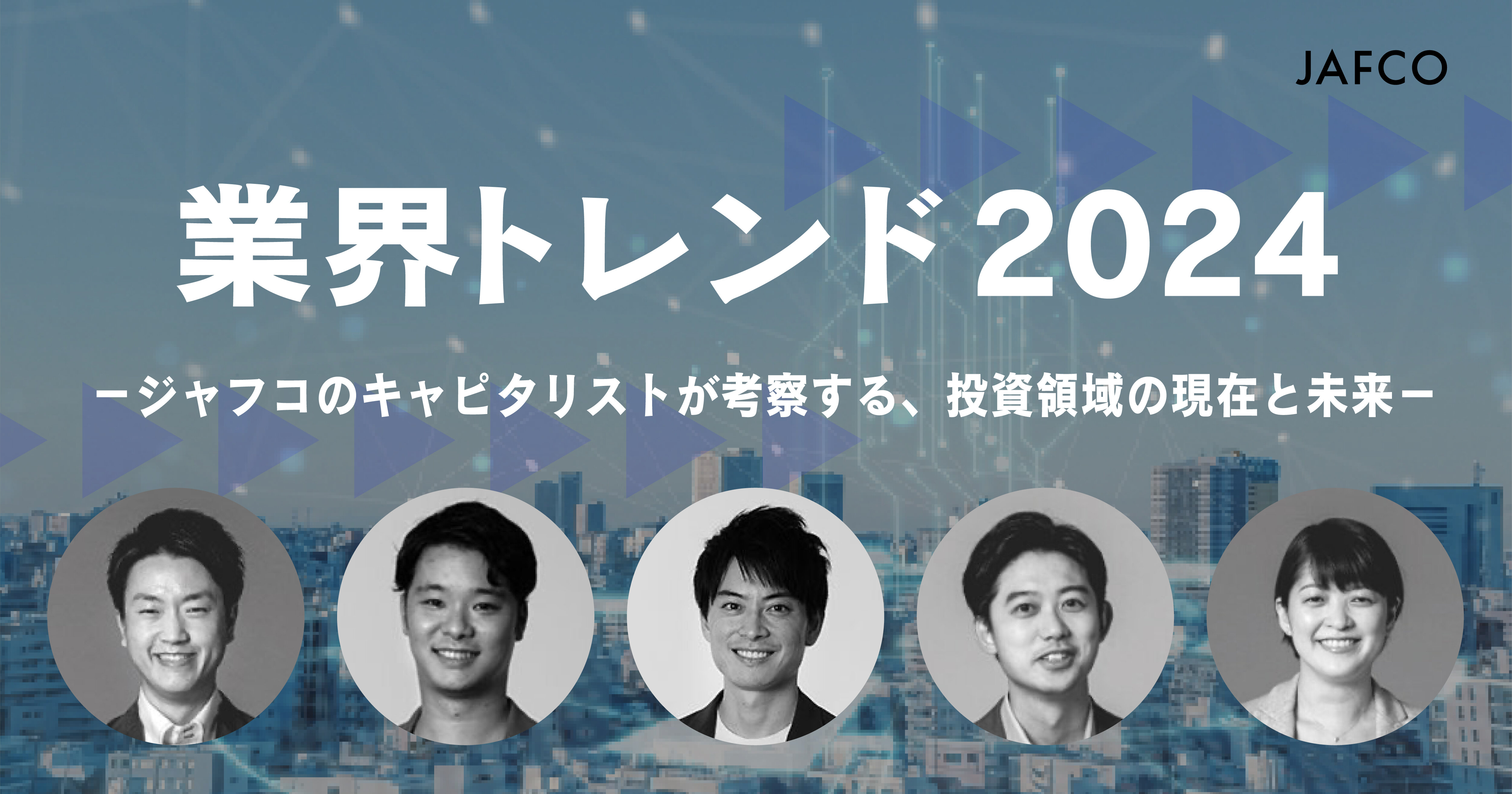 今回は、各業界の最前線で投資活動を行うジャフコの各キャピタリストが【バイオエコノミー】【モビリティ】【ディープテック×AI】【宇宙】【ヘルスケア】【エネルギー】の業界トレンドを解説。自身の投資先企業の事例も交えながら、投資領域の現在と未来について考察します。