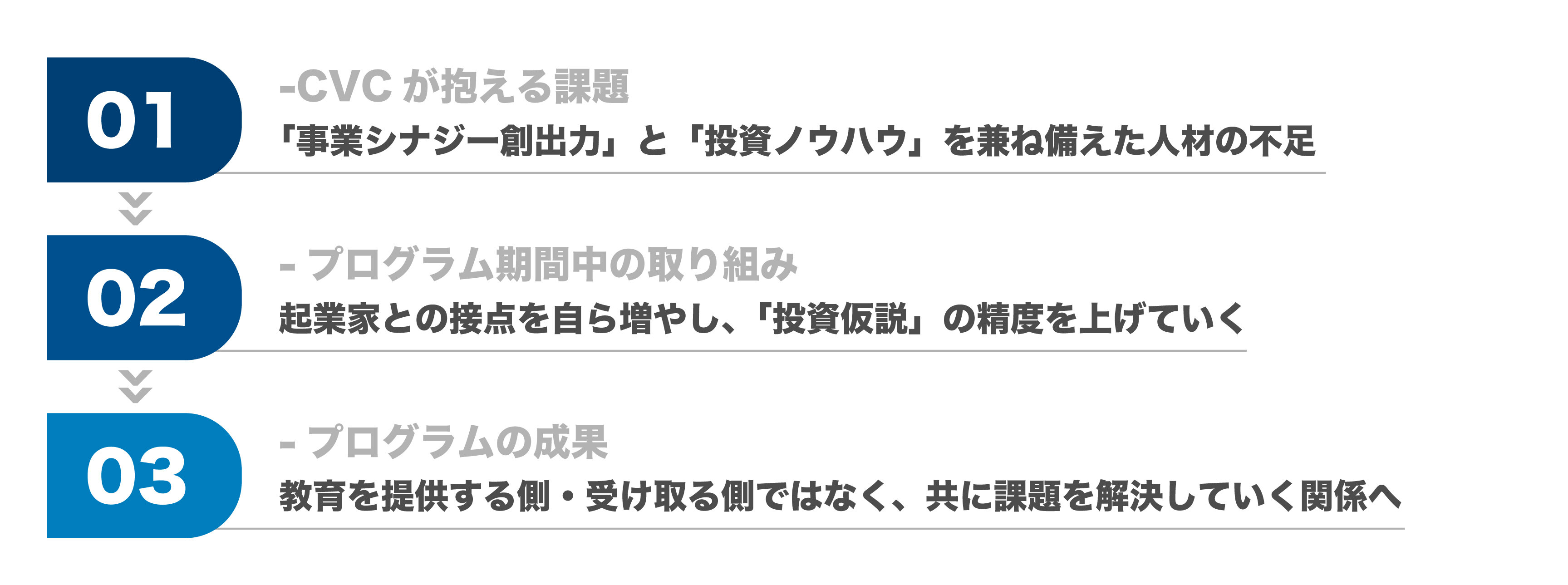 ースタートアップ投資は全く未経験の状態からプログラムに参加されたのですね。では、具体的なプログラム内容を教えてください。