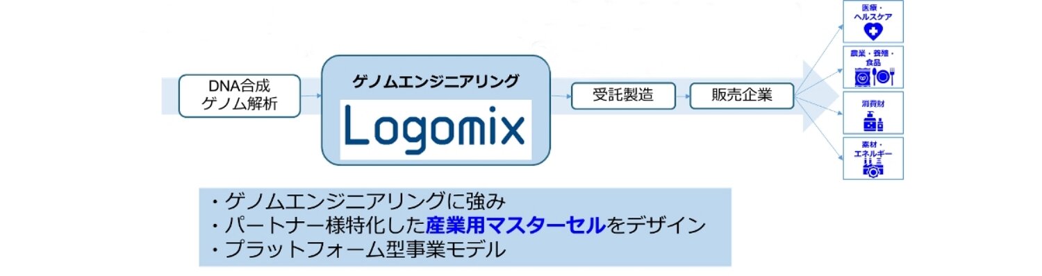 The company name Logomix comes from "logogram (= ideogram) + mix", and is derived from the idea of a company that creates new value by combining "functions" encoded in genome sequences.