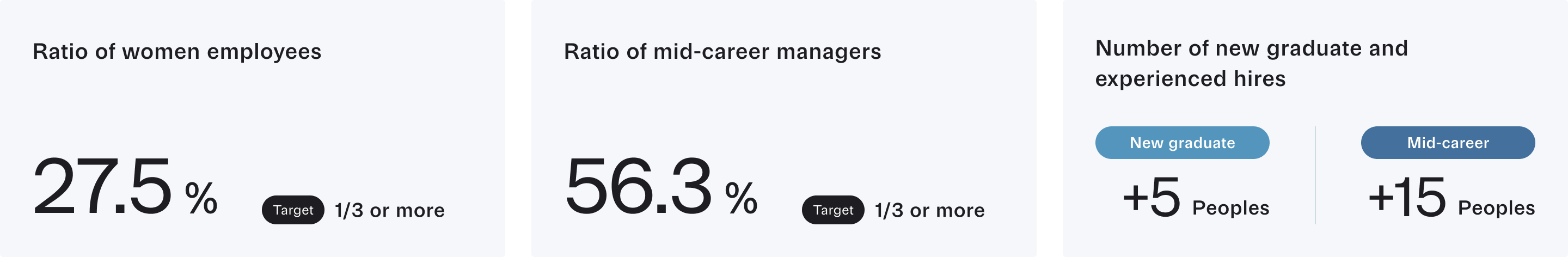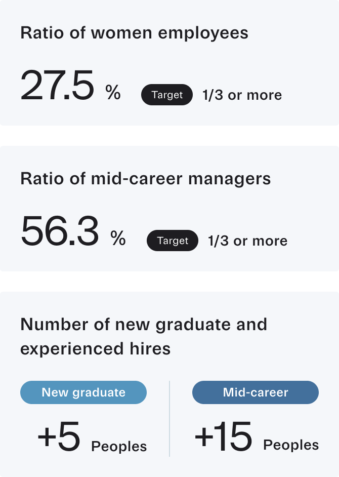We believe that fostering mutual respect for human rights and dignity and striving to eliminate discrimination and harassment from society with all connected parties, including directors, officers, employees, members of portfolio companies and investment candidates, clients, and business partners, is essential for achieving sustainable corporate growth and fulfilling our social responsibility.