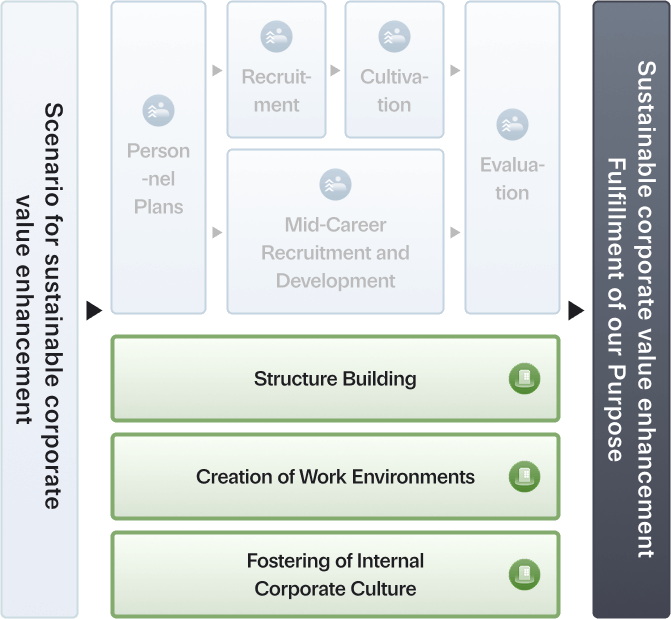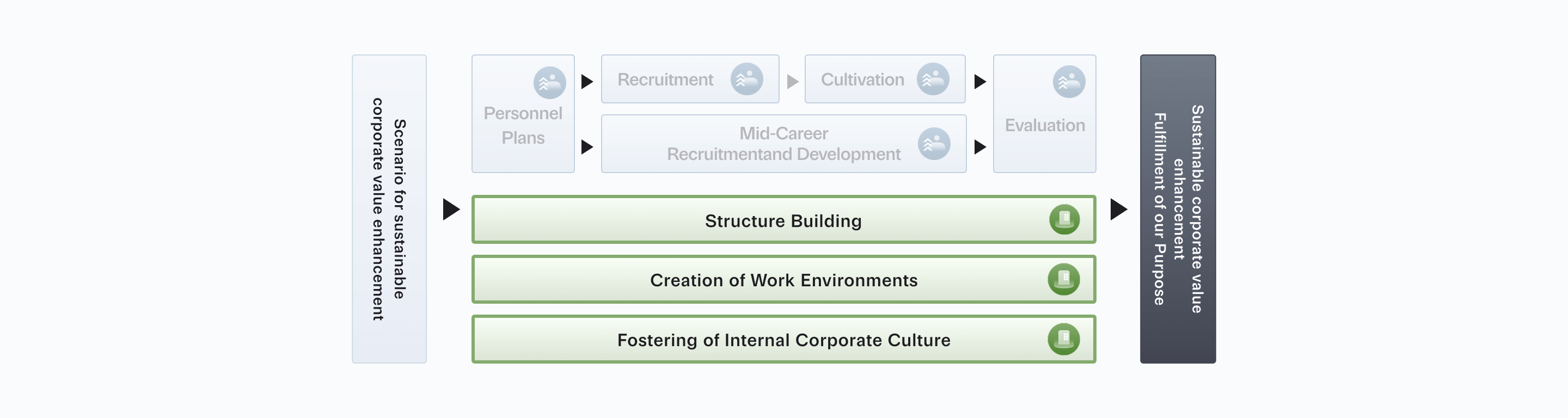 Our organization is becoming more diverse as the percentage of mid-career hires increases and workstyles become more flexible. While we celebrate this increase in diversity, we also recognize the need to reinforce the corporate culture we have valued over many years.